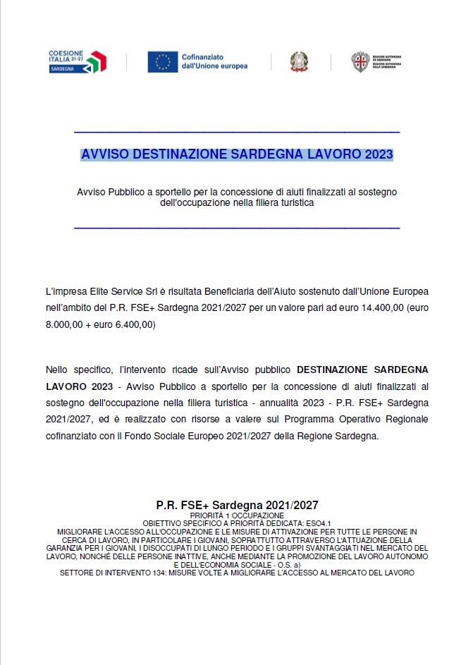Per maggiori info ti invitiamo a contattarci dal lunedì al venerdí dalle h 08:00 alle h 16:00 al numero 0784 842010 oppure via mail all'indirizzo